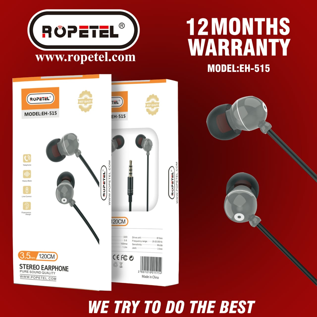 stereo bass earphone 120CM colors: black / white